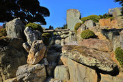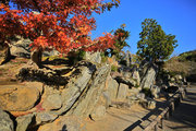 本堂の前庭とその下の広場との高低差を処理する土留めとして、又、その広場から雄大な本堂を仰ぎ見る前景として築かれた石組みで、日本庭園の中でも先例のない様式である。
