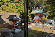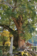 行者堂、鐘楼、巨大クスノキ、六角堂。