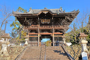 三間一戸楼門、入母屋造、正面軒唐破風付、本瓦葺、両側面袖塀附属棟札1枚