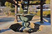 市文 盥漱盤(荷葉鉢) - 安永4年(1775年)、粉河鋳物師蜂屋薩摩掾五代目源正勝の作。総高240cm、幅185cm。