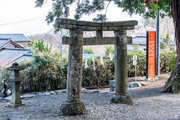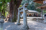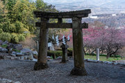 総門から石鳥居越しに見る街路と扇状地の景観が美しい。甲府の武田館と同様、領地の支配者としての権力をみせつける景観である。