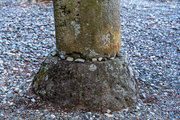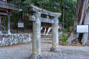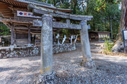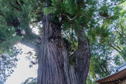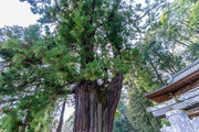 神社裏には神木の大杉が屹立している。境内は静かで、シャガが木漏れ日を浴優雅に咲いていた。