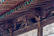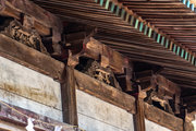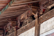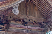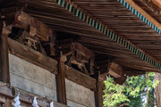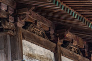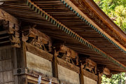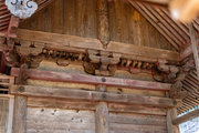 雄大かつ意匠に凝った建築であり、正面三間の板唐戸、蛙股などに趣が見られる。棟瓦は大変な迫力である。